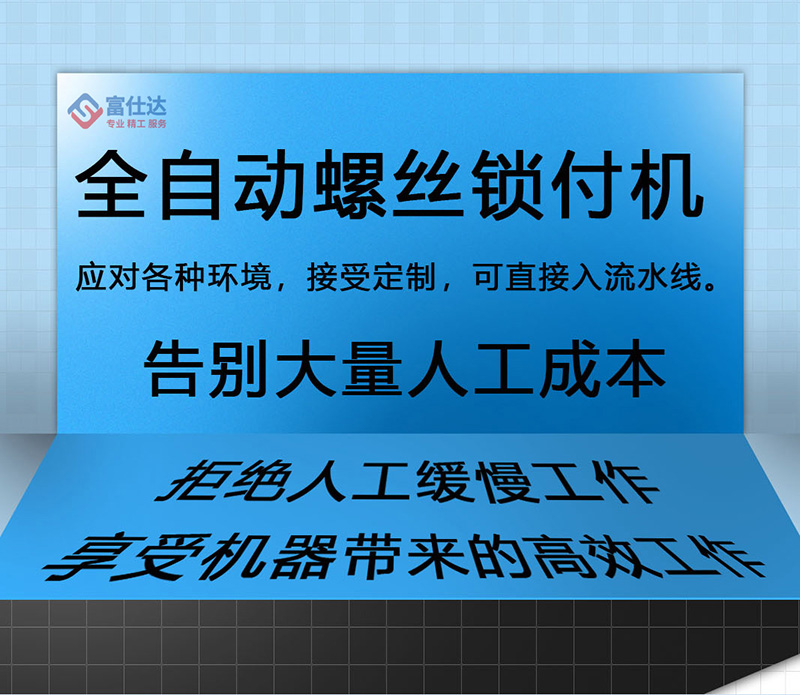 富仕達擁有獨立研發(fā)設(shè)計團隊600多位自動化高級工程師,5000㎡自動鎖螺絲機生產(chǎn)、測試車間,專業(yè)售后服務(wù)團隊,為客戶提供方案設(shè)計、設(shè)備制造、操作培訓(xùn)、售后服務(wù)等一站式服務(wù)。 公司將持續(xù)提升技術(shù)創(chuàng)新和產(chǎn)品服務(wù)方面的優(yōu)勢,堅持“專業(yè)、精工、服務(wù)”的企業(yè)理念,聚焦于自動鎖螺絲設(shè)備生產(chǎn),通過系統(tǒng)的一站式解決方案,真正的幫助客戶提升效率、降低成本,提升客戶的核心競爭力。